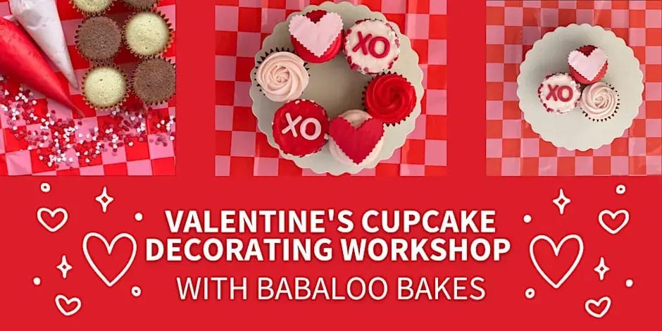 Pink frosting, heart-shaped fondant, piping & lots of taste-testing (you know, just to be sure) — Babaloo Cakes invites you to a fun and festive Valentine’s Day cupcake decorating workshop. Cupcake lovers of all ages welcome.🧁