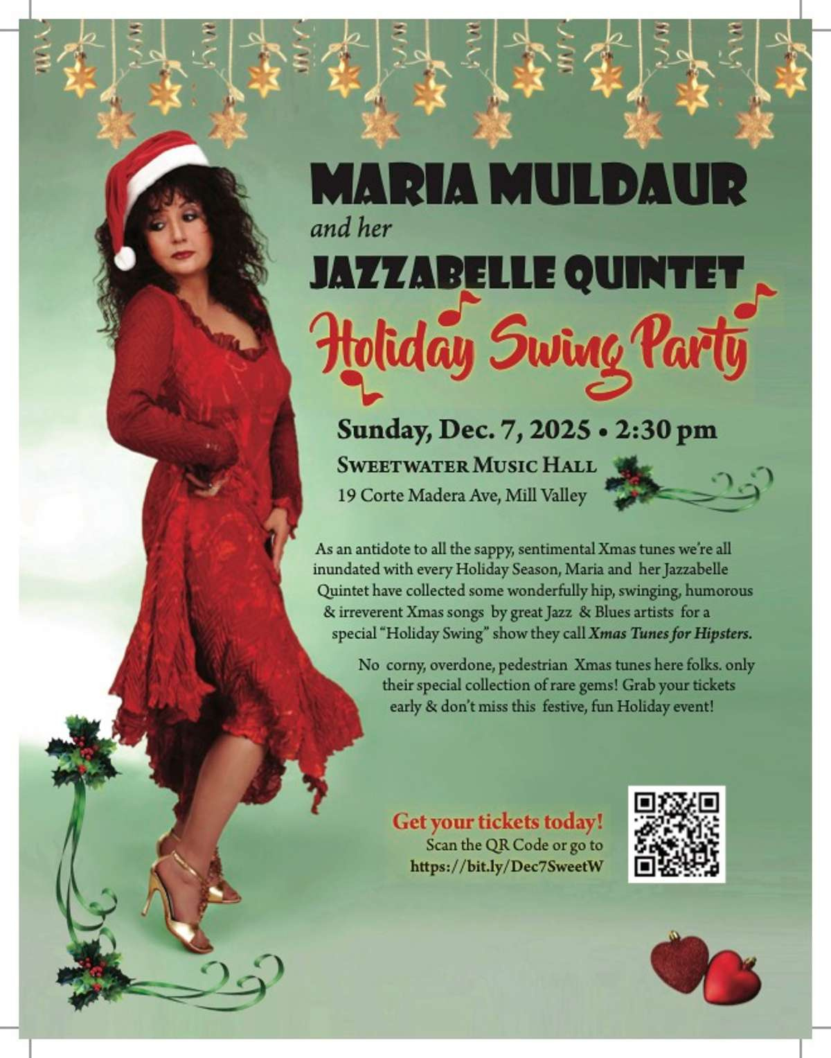 San Geronimo’s 56th Annual Holiday Arts Faire (Dec. 6) returns with more than 30 local vendors who fill the community center with handmade gifts, plus live music, tasty soups and sweets, kid-friendly crafts, a greens workshop, and Anny’s beloved holiday singalong. And you bet — a visit from you know who between 12–2 pm.